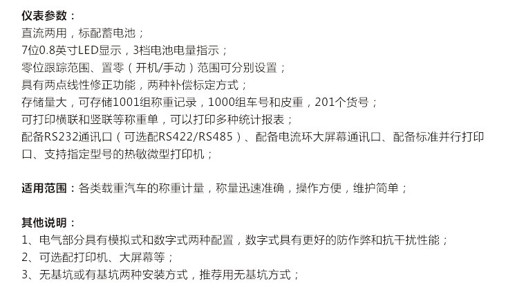 產(chǎn)品有:便攜式軸重儀,防爆儀表,液化石油氣灌裝秤,無(wú)線電子吊秤,公司建筑面積15000平方米,員工貳佰余人。